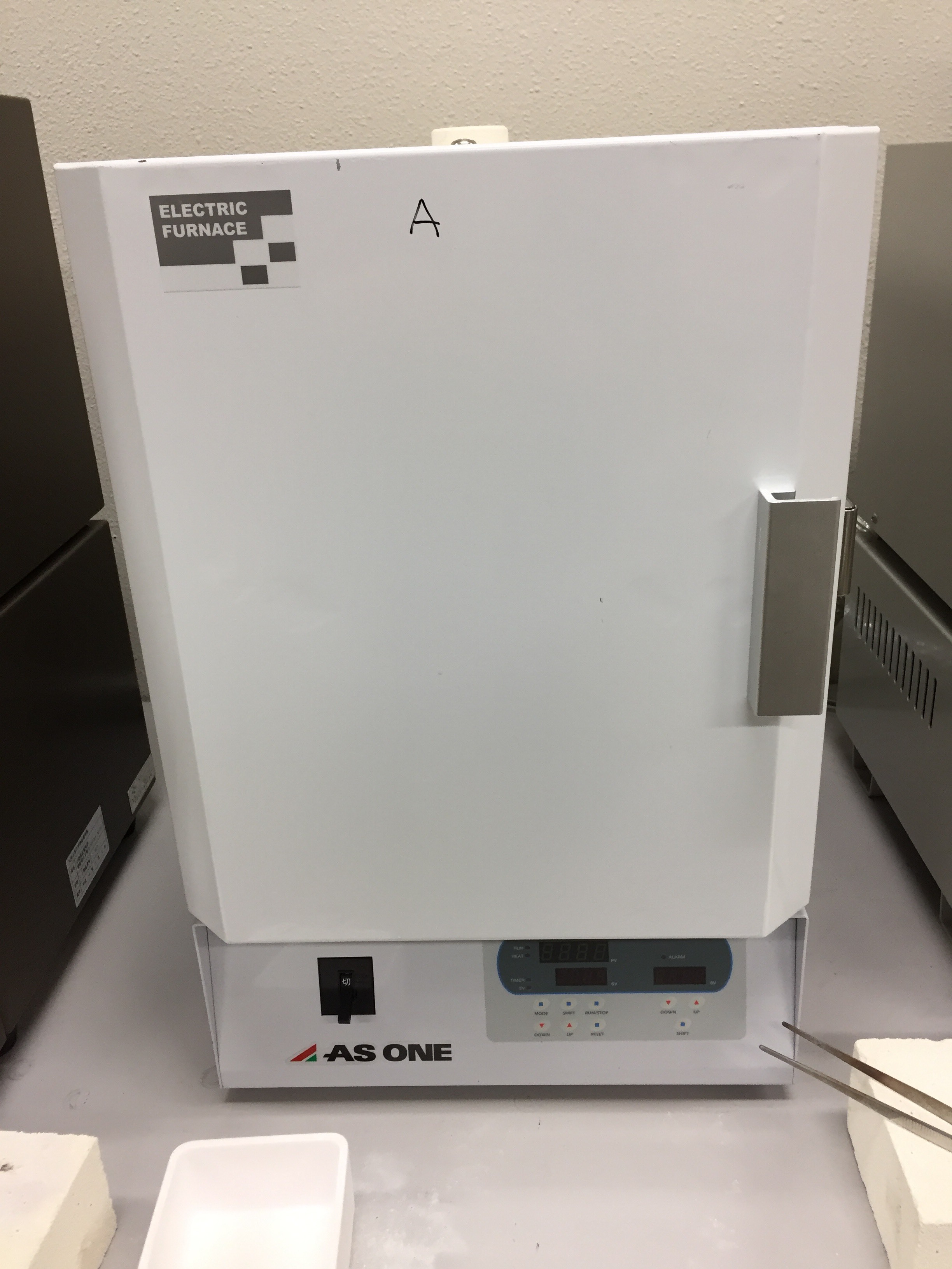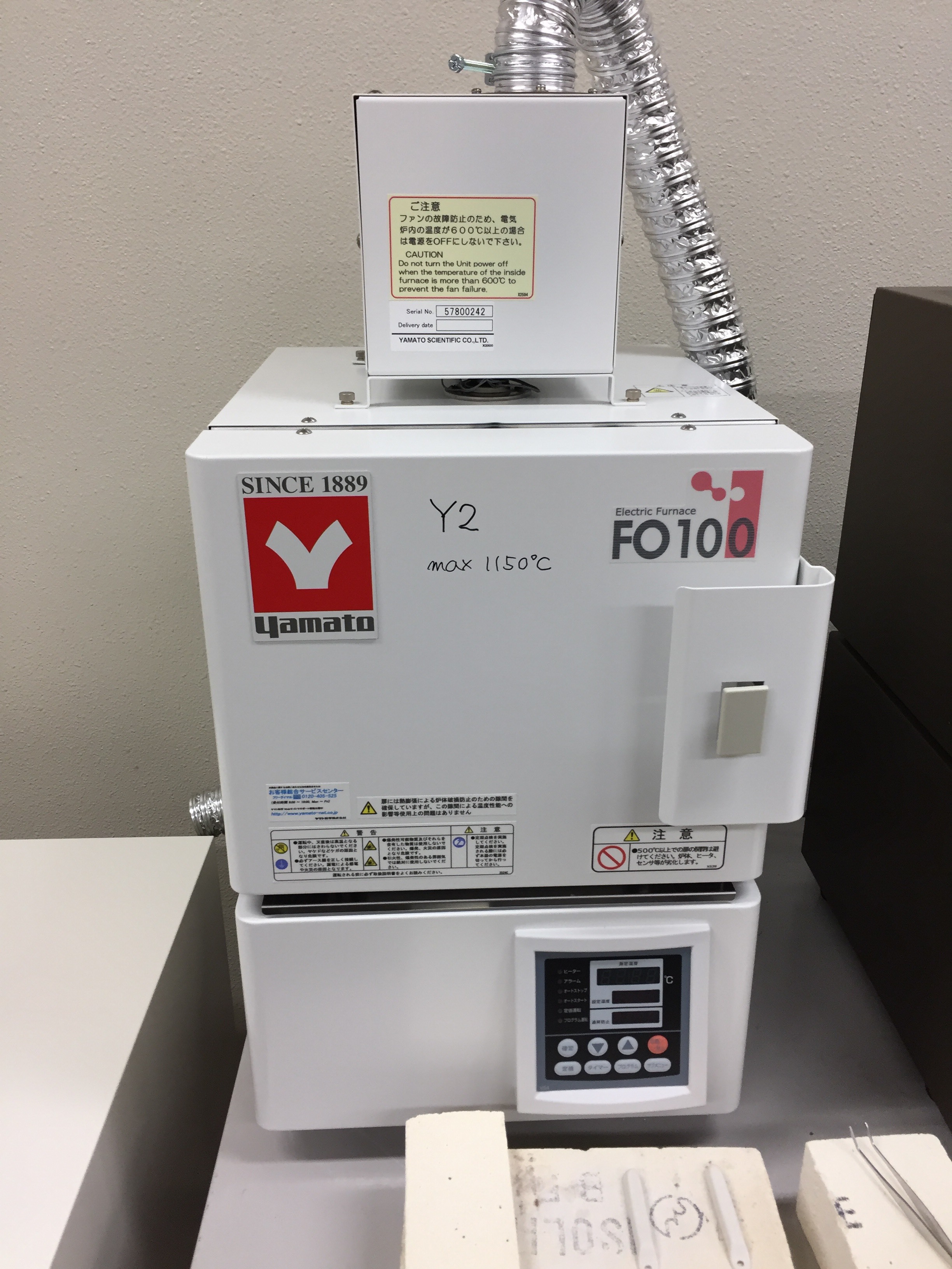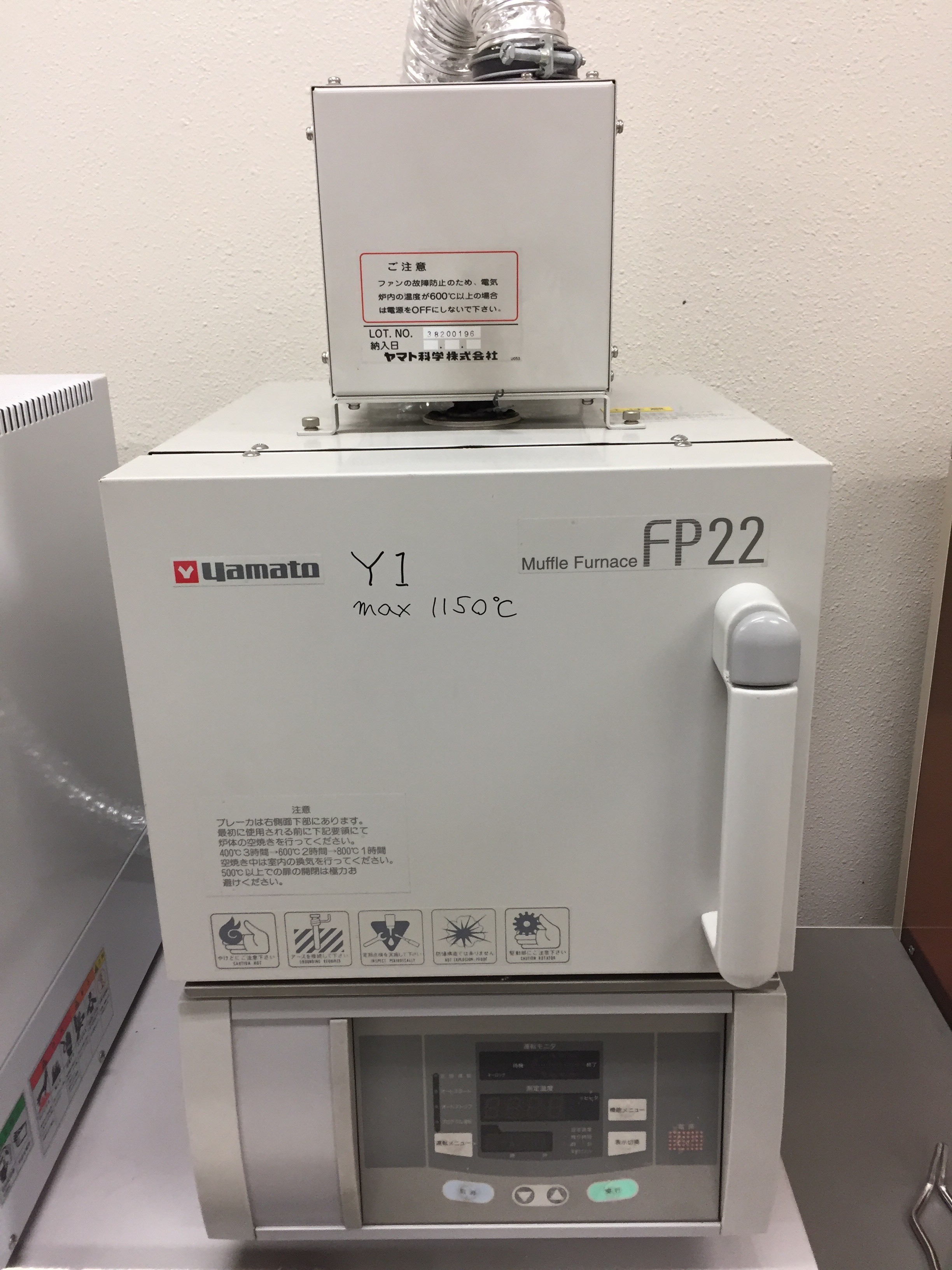 1150℃までの焼成が可能。炉内の排気機能付き。イリジウム酸化物などの合成で用いられている。研究室で一番成果を上げている功労者。
