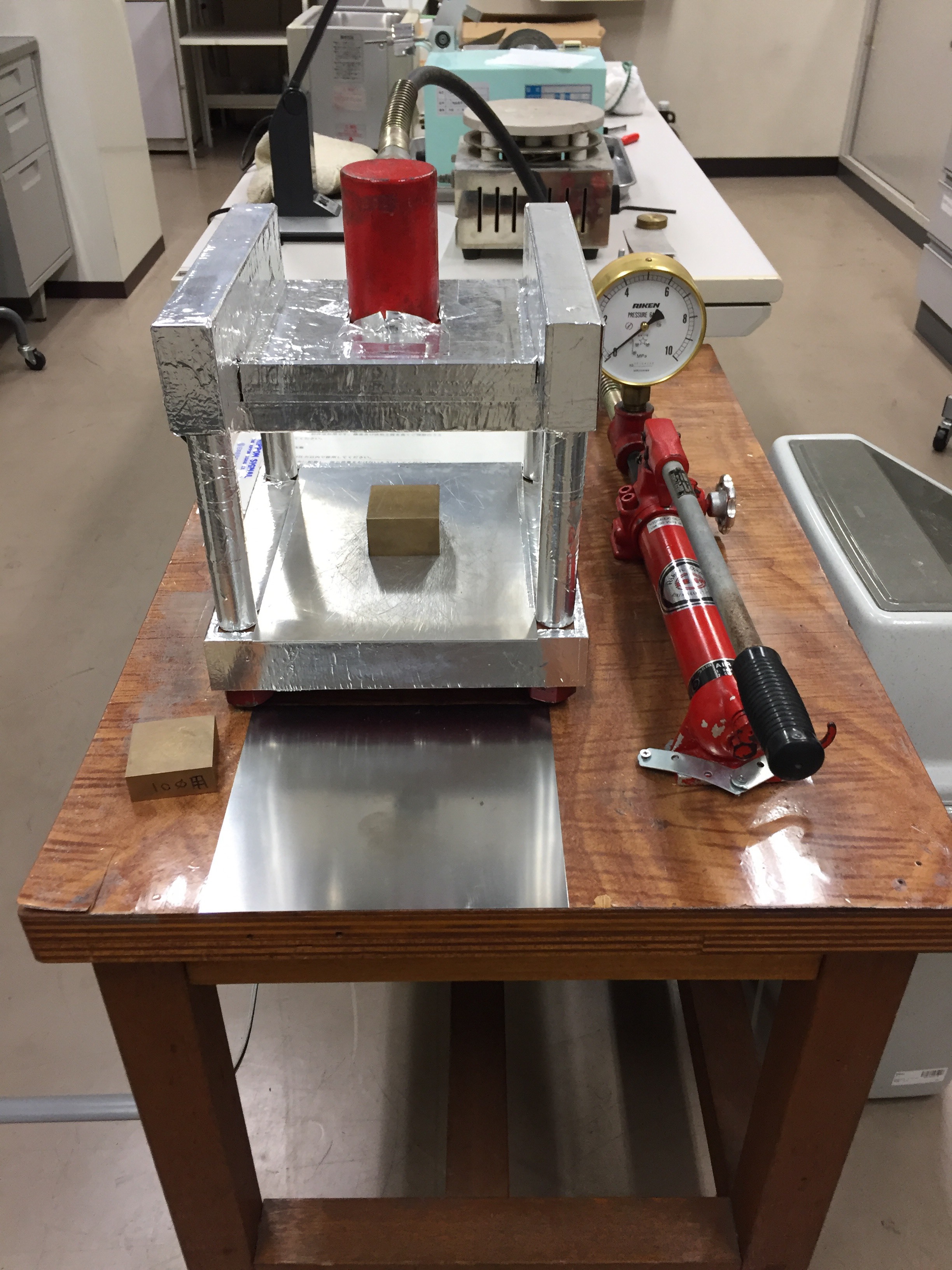 超硬ダイスと用いて,粉末からペレットに成形するのに用いる。