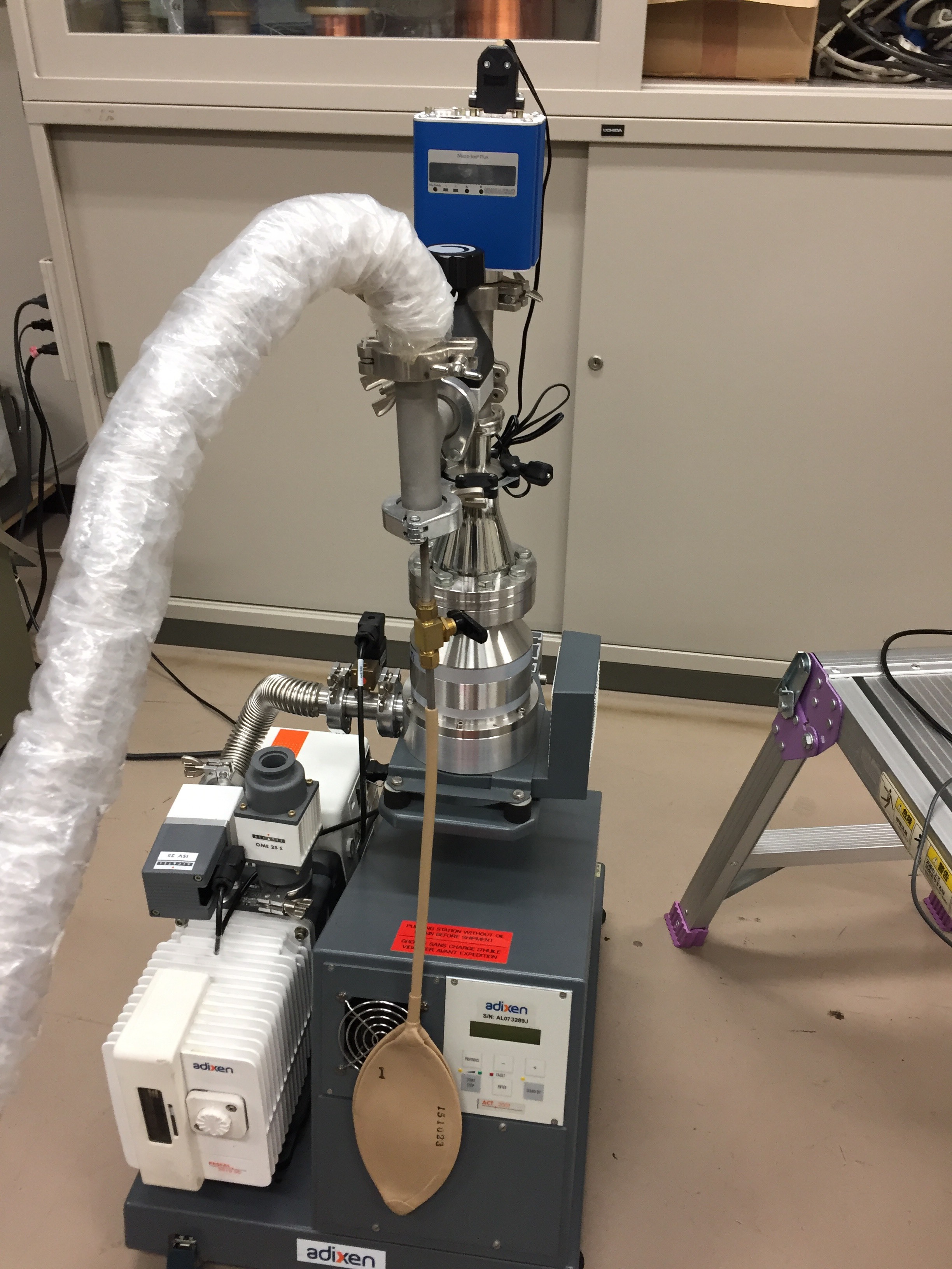 GM冷凍機やヘリウム3ソーブ式冷凍機などのクライオスタット内部の空間を真空排気する際に使用する。計測実験の際には必ず用いる使用頻度の高い装置。