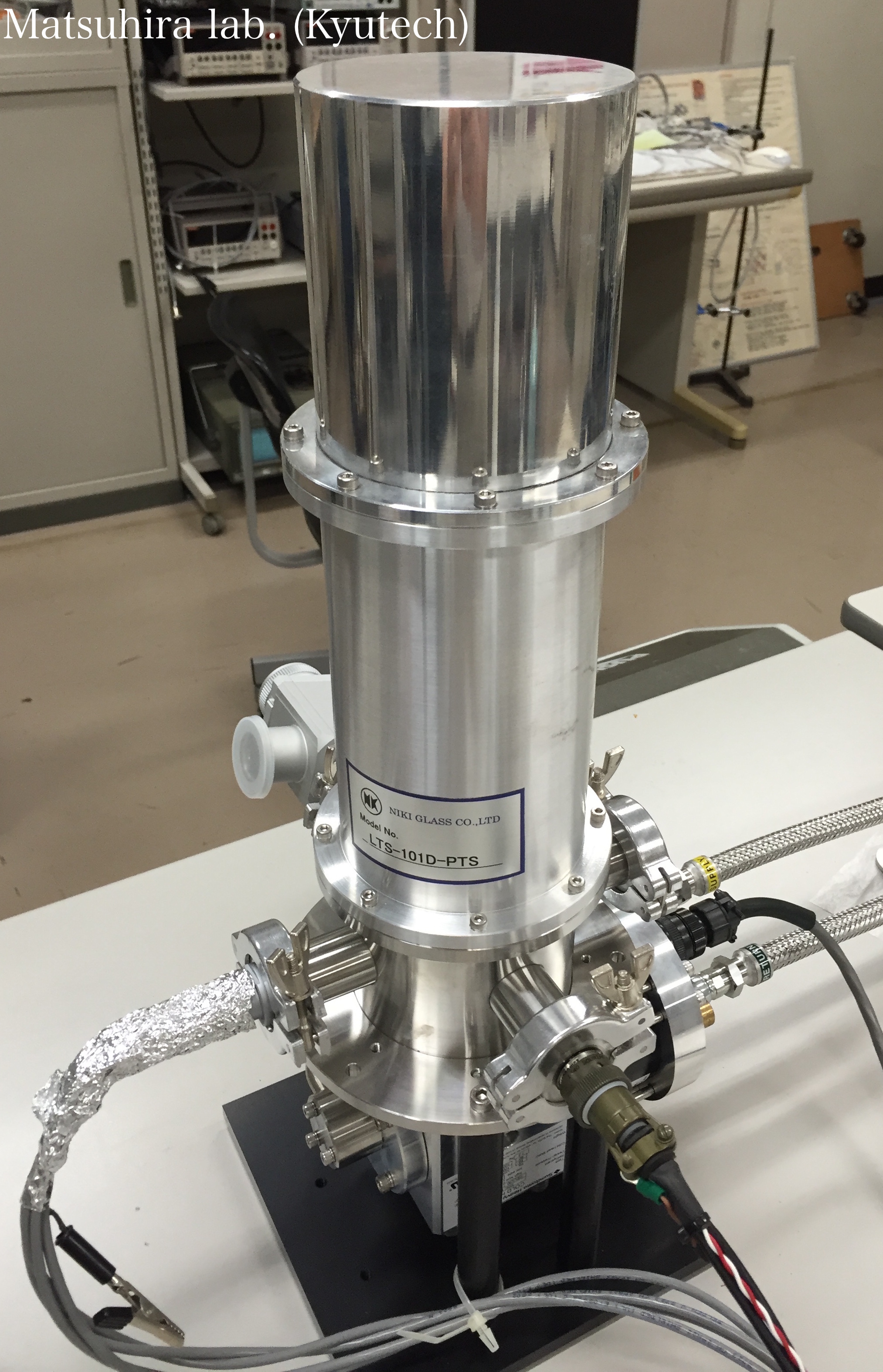松平が旋盤などを使って全ての部品を製作した4Heクライオスタット(熱電能と電気抵抗測定用),キャパシタンス式熱膨張測定用4Heクライオスタット,多数の測定器(温度コントローラ,ナノボルトメータ,微小電流電源,超高抵抗/微小電流計,ロックインアンプ,ファンクションジェネレータ、LCRメータ etc.)があります。