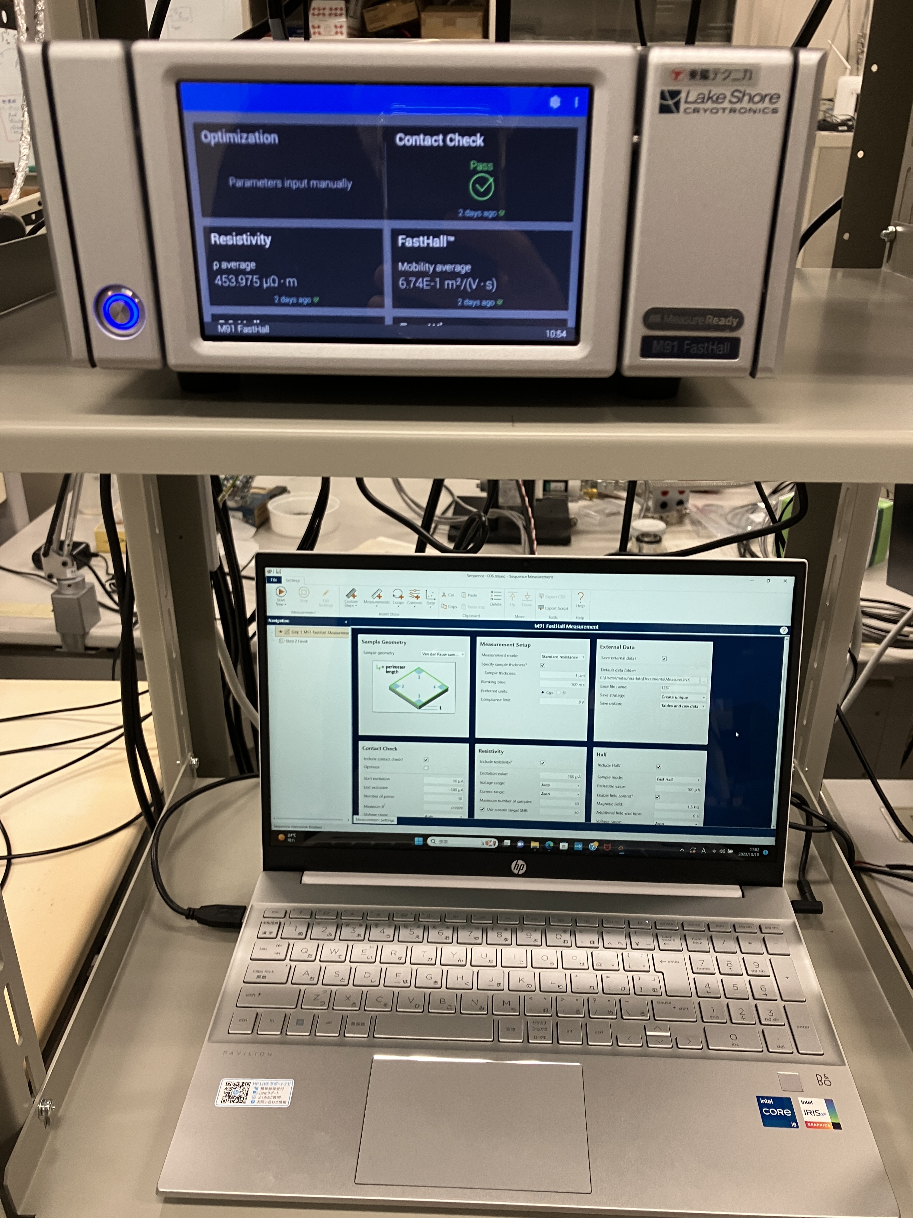 LakeShore社FastHall™ホール効果測定コントローラ M91型。FastHall測定技術を用い,van der Pauw/Hall barの両方で,半導体材料の抵抗,キャリア密度,移動度を高速で計測可能です。2023年度導入
