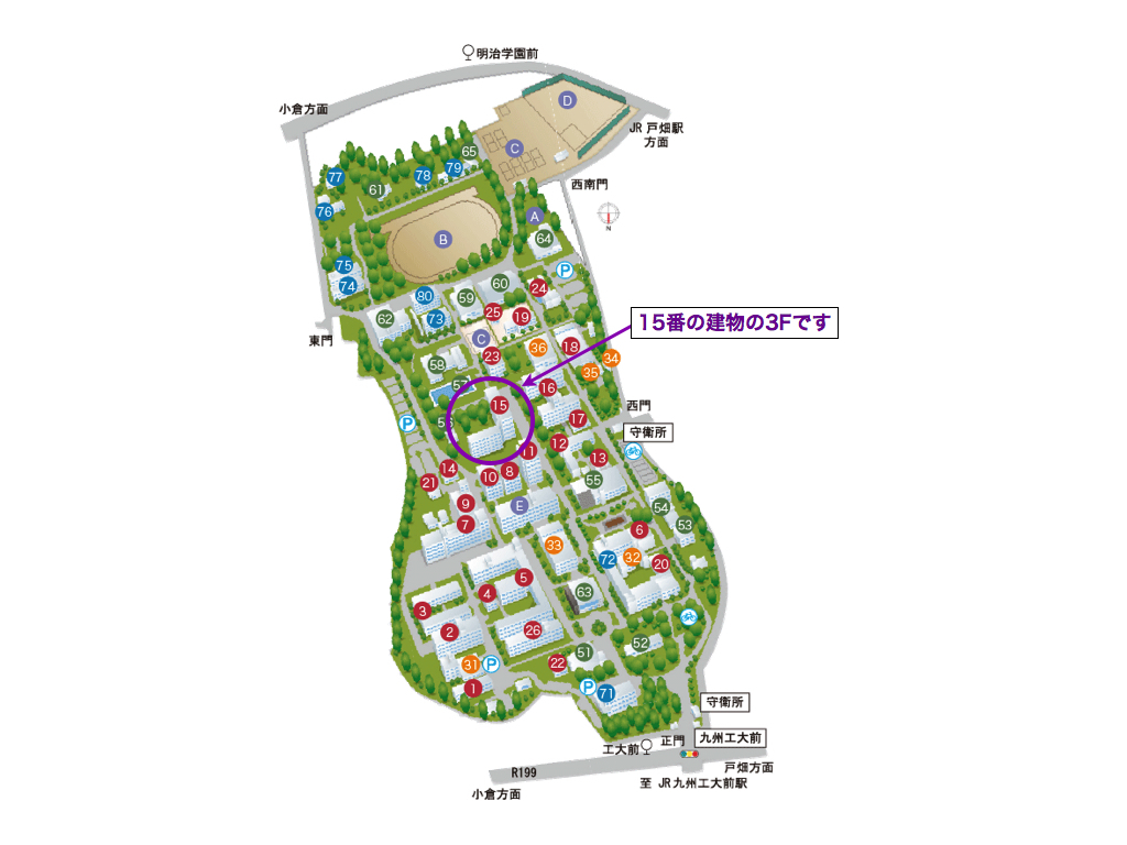 JR九州工大前駅から徒歩約15分